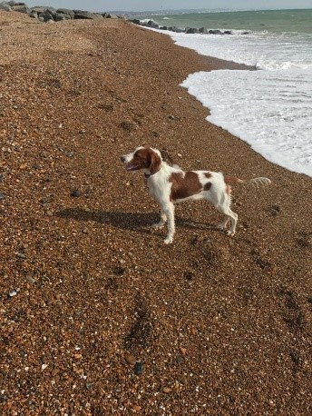 Peter and family delivered our beautiful pup Minnie to us on 30th July. She arrived knowing her name, sitting on command and settled no problem. First day out walking with her and the other three and she was was off lead. To date, despite meeting and playing with other dogs and puppies, she always comes back. We were loving seeing the web cam videos of the puppies growing up. Minnie is very strong willed, loves being cuddled, and to date has not shown any interest in chewing things she shouldn't. She sleeps all night and has done so since the beginning. She has a quiet, gentle temperament from most setters and we are glad she has fitten in so well. Her and one of our cats play together all the time. What more could we ask for?