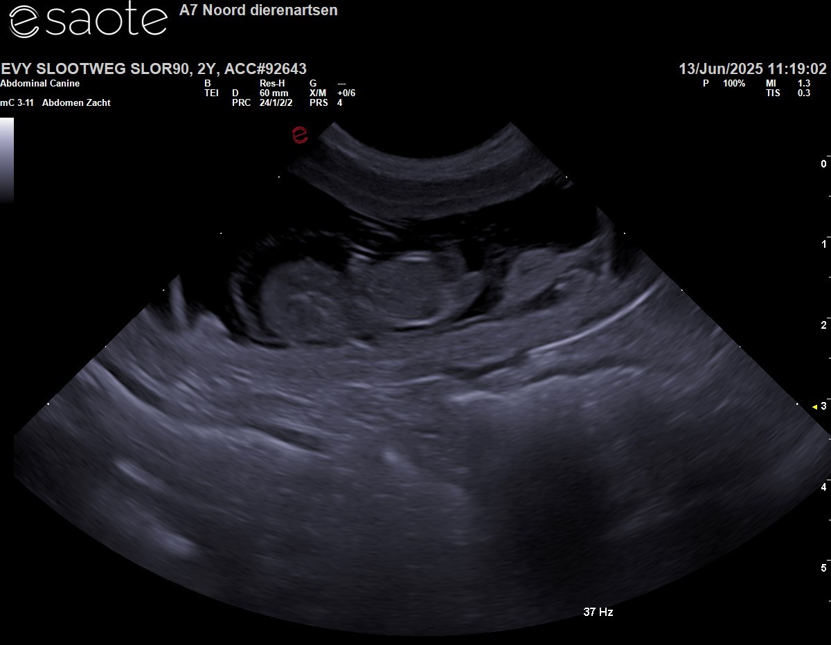Vandaag zijn wij met Evy naar de dierenarts geweest voor een Echo en daarmee is bevestigd dat ze zwanger is. Hieronder de foto.