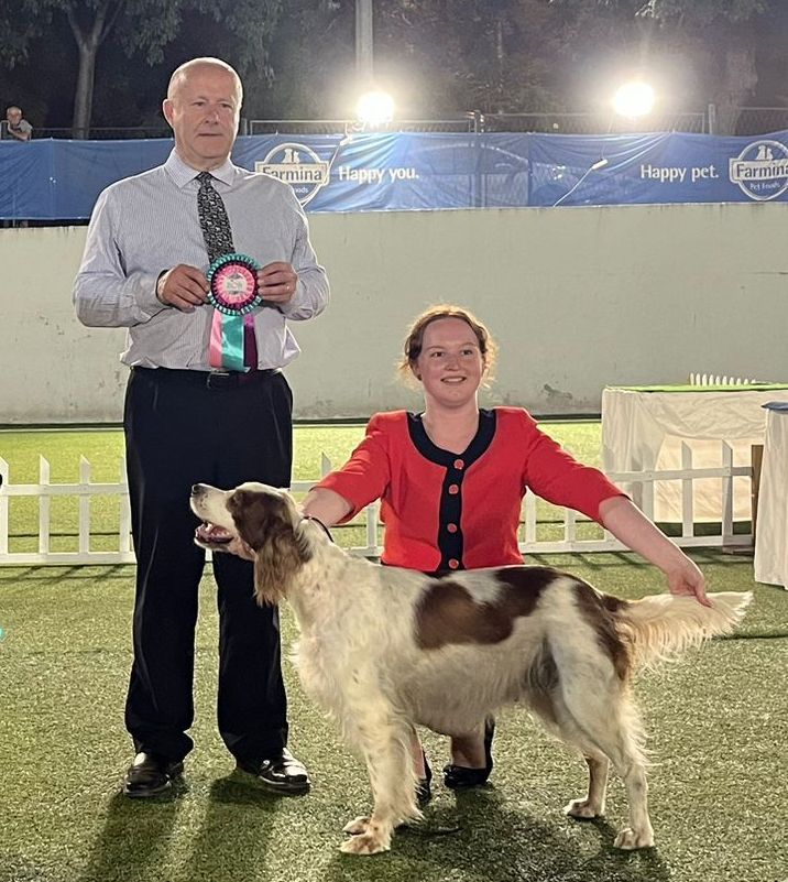 Op de show in Genk hebben wij 2 honden uitgebracht. Dag 1: C'mas Dasher of the Ronerfields 1U in kampioensklasse, BOB, CAC&CACIB, Selected in group 7. Dag 2: Hugs 'N Tugs Wicked Evy 4U in open klasse.
