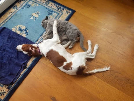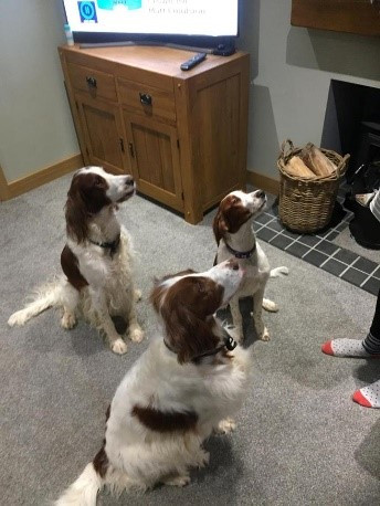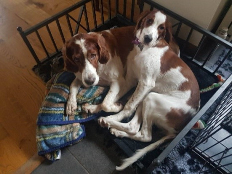 Peter and family delivered our beautiful pup Minnie to us on 30th July. She arrived knowing her name, sitting on command and settled no problem. First day out walking with her and the other three and she was was off lead. To date, despite meeting and playing with other dogs and puppies, she always comes back. We were loving seeing the web cam videos of the puppies growing up. Minnie is very strong willed, loves being cuddled, and to date has not shown any interest in chewing things she shouldn't. She sleeps all night and has done so since the beginning. She has a quiet, gentle temperament from most setters and we are glad she has fitten in so well. Her and one of our cats play together all the time. What more could we ask for?